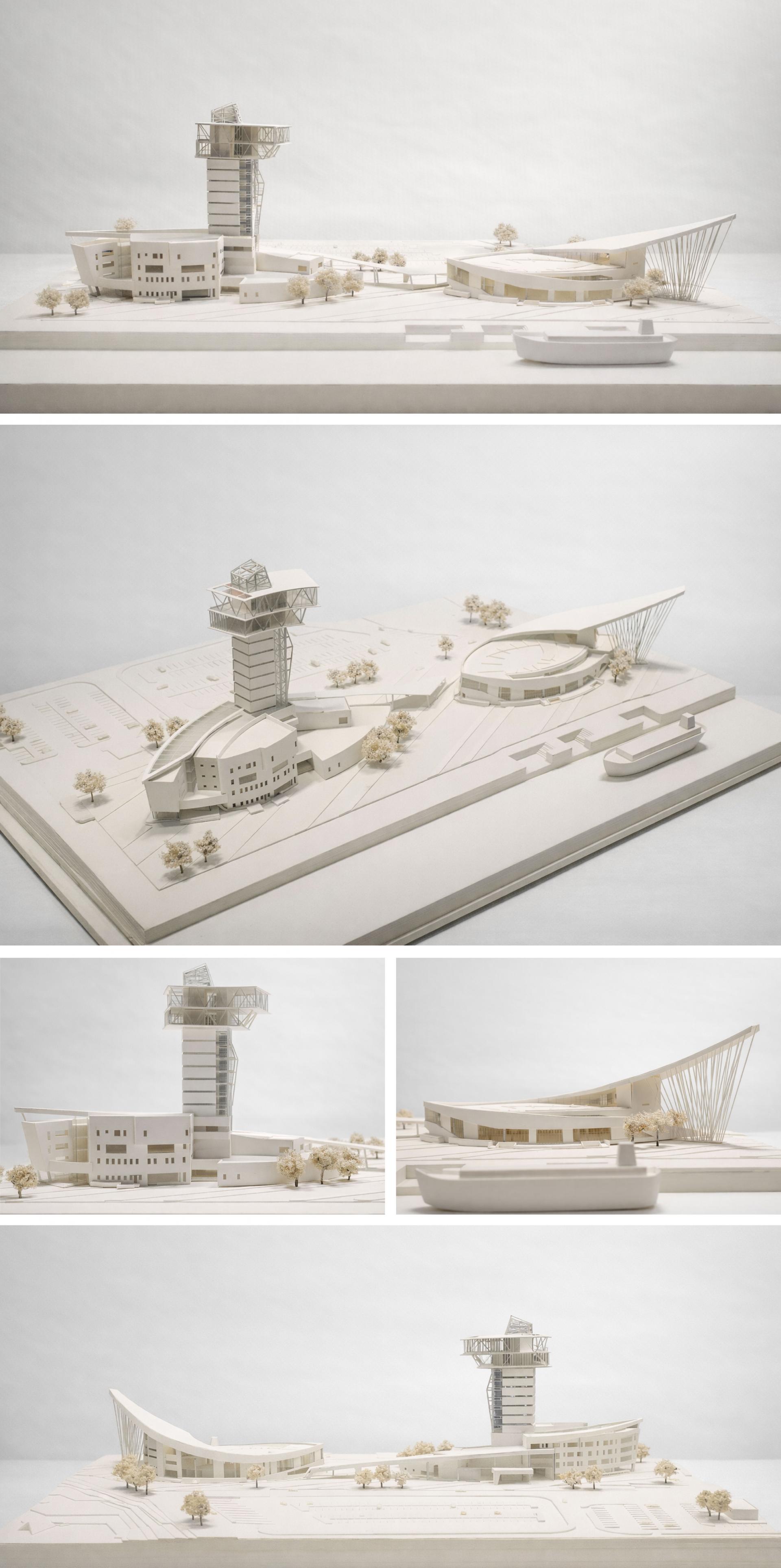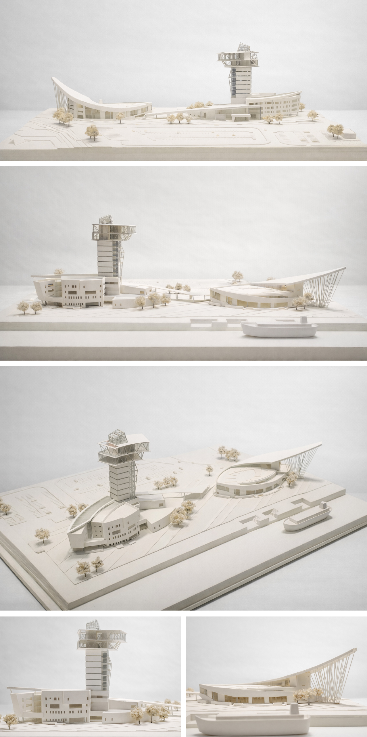 여객터미널 빌딩은 해상교통과 육상교통 이용자의 접근 동선이 전이(轉移)되는 기능적 공간으로, 이용자에게 명확한 동선 제시 및 각종 서비스 영역의 시각적 인식이 필요함에 따라 ‘중앙대합실’을 마련하여 제한 조건을 해결했다. 승하선 동선과 전면 도로측 동선, 옥상광장 진입 동선, 통합센터 홍보관 접근 동선은 기능적인 주 동선으로, 타원형의 평면 구성으로 건물 전체 입면이 정면으로 인식될 수 있게 하였다.
