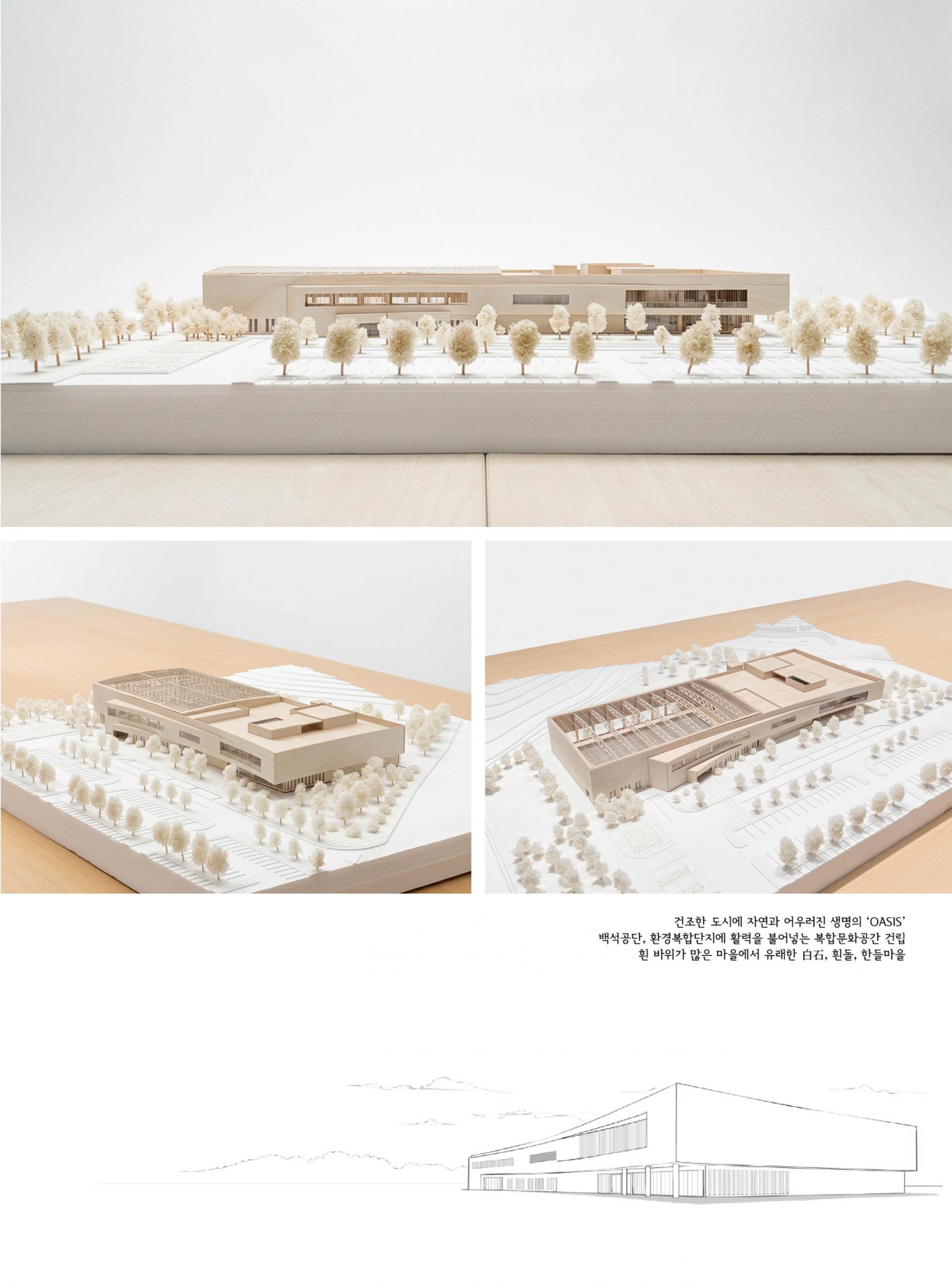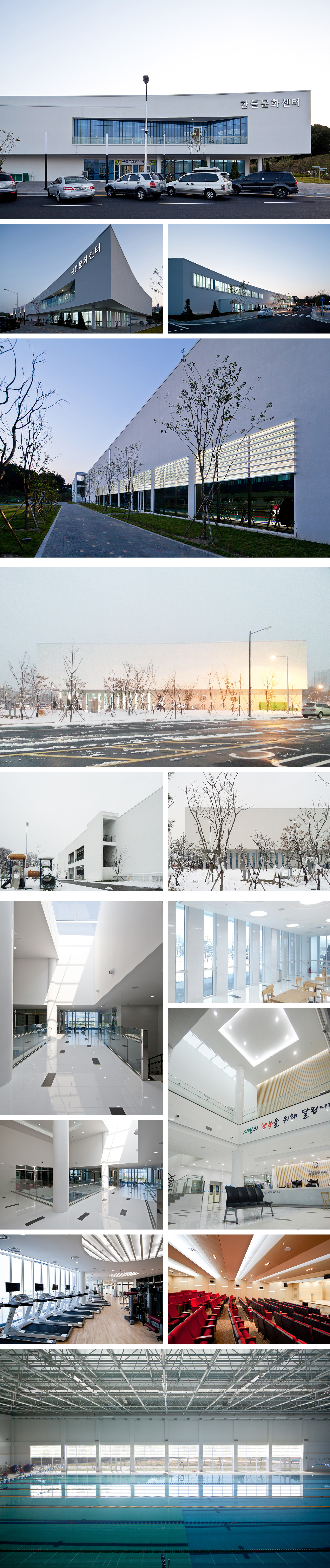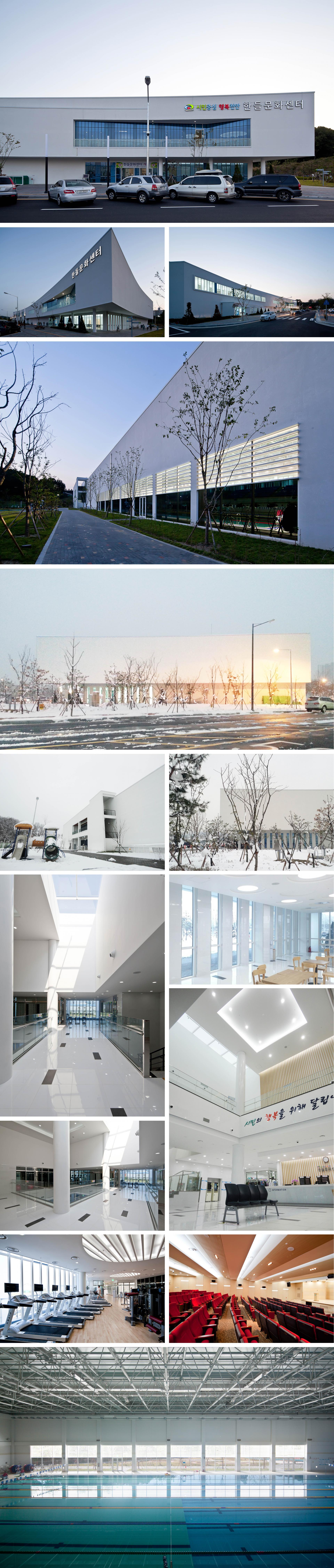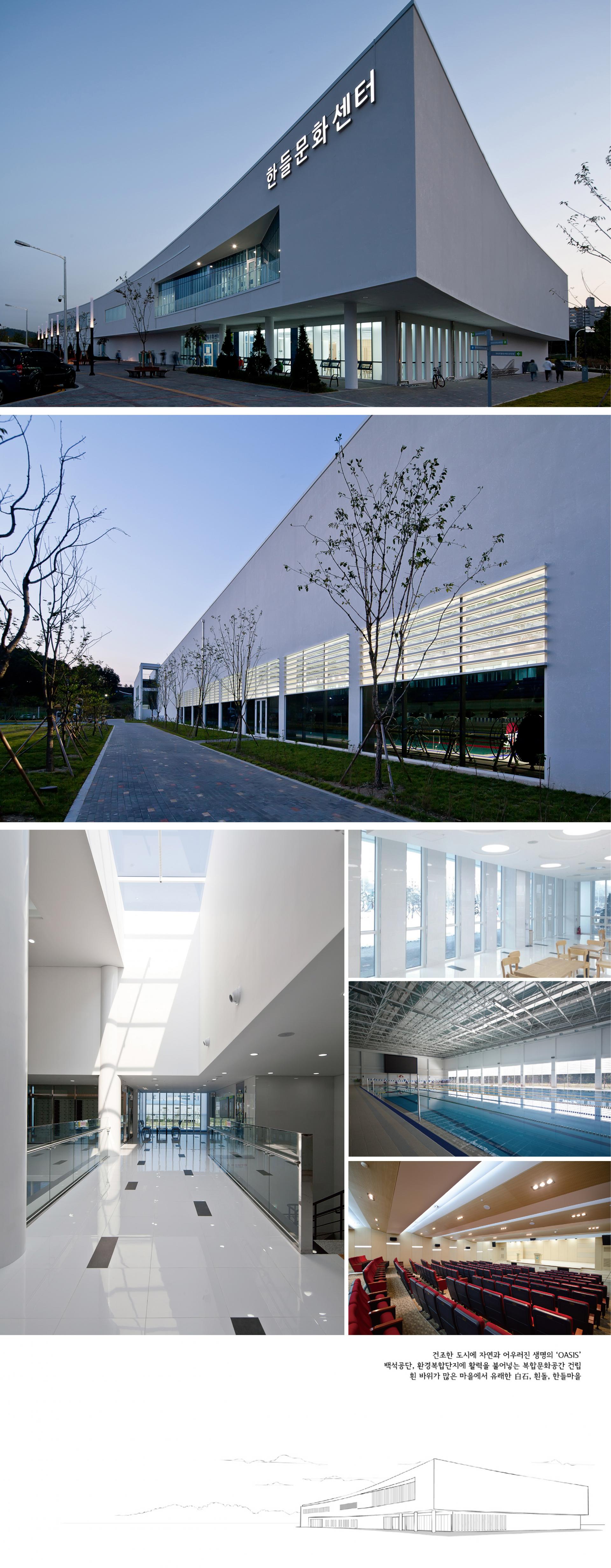 시설 프로그램은 국제경기 규격의 수영장, 목욕탕이 있는 찜질방 홀과 피트니스 시설, 다목적 이벤트홀, 휴게 로비라운지, 야외 어린이 놀이마당으로 구성되었고, 시설배치와 공간구성 얼개는 프로그램을 수용하는 매스스터디와 함께 진행하며 목표하는 건축적 분위기에 최대한 도달할 수 있도록 노력하였다.