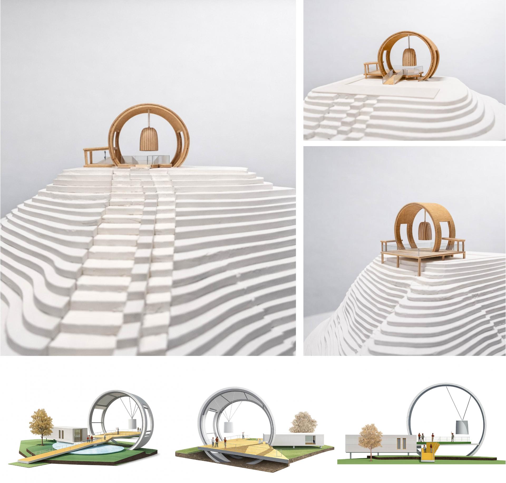 전망대 계획시 기존 자연환경, 건물, 도로 등을 고려한 배치와 주변 산세와의 어울림 및 스카이라인을 고려한 입면을 생각하였다. 수직, 수평 동선과 시야의 변화를 꾀하였으며 지역주민, 방문객의 평화의 댐 전망에 대한 관광의 편의를 고려한 데크가 있다.
